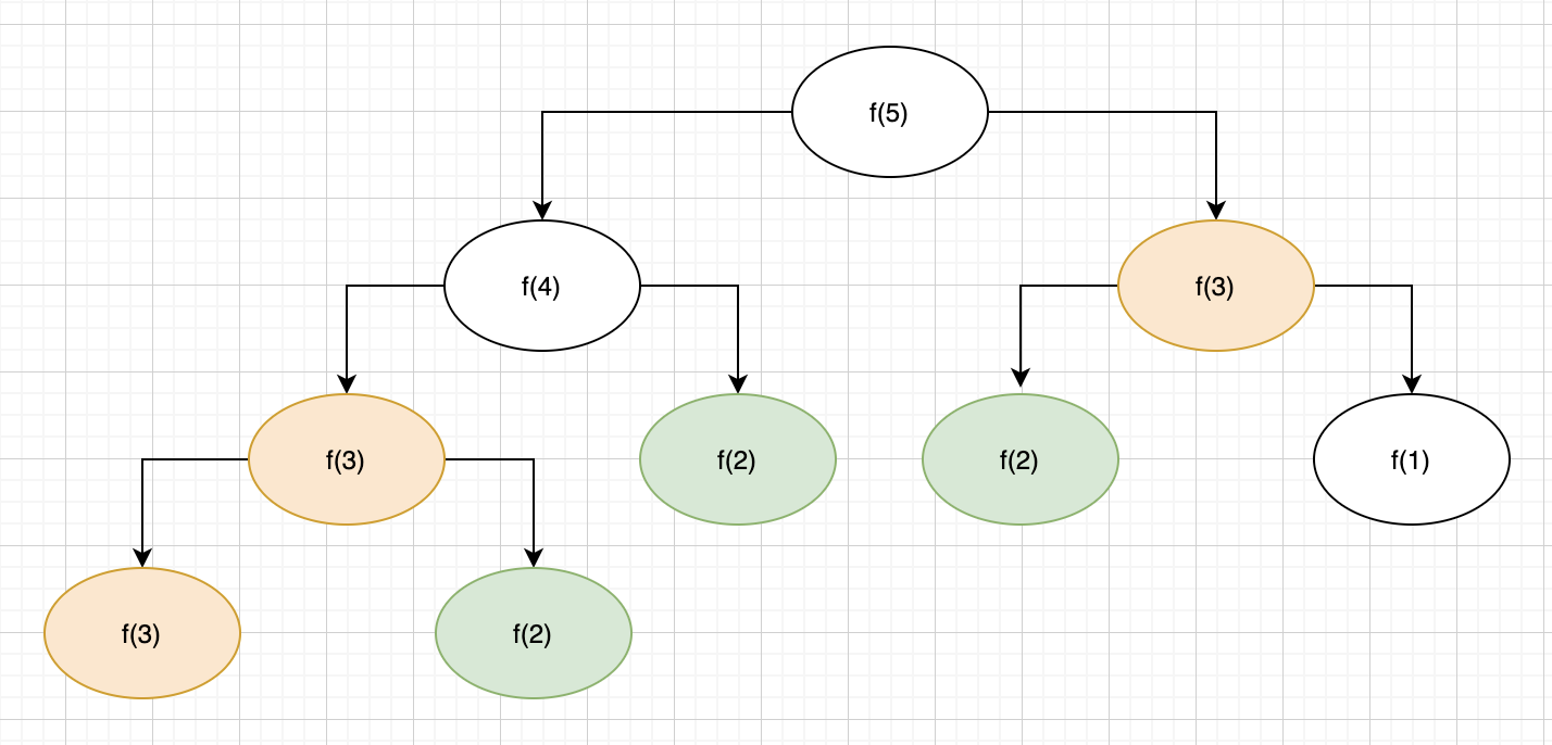 대표적인 중복문제는 피보나치 수열 알고리즘이다. 피보나치 수열은 "0, 1, 1, 2, 3, 5, 8, 13, 21, 34, 55, 89, 144, 233, 377, 610, 987, 1597, 2584, 4181, 6765, 10946"라는 값을 가지고 있다. 점화식으로 $a_n = a_{n-1} + a_{n-2}$ 를 사용하는데 이 수식을 파이썬 코드로 확인하고 트리구조로 보면 반복되는 구간이 많다. 재귀함수로 계속 트리를 만들면서 값을 만들고 탈출문인 if문을 만나면서 종료가 되는데 이때 같은 계산과 결과를 가진 가지들이 다수 만들어진다.